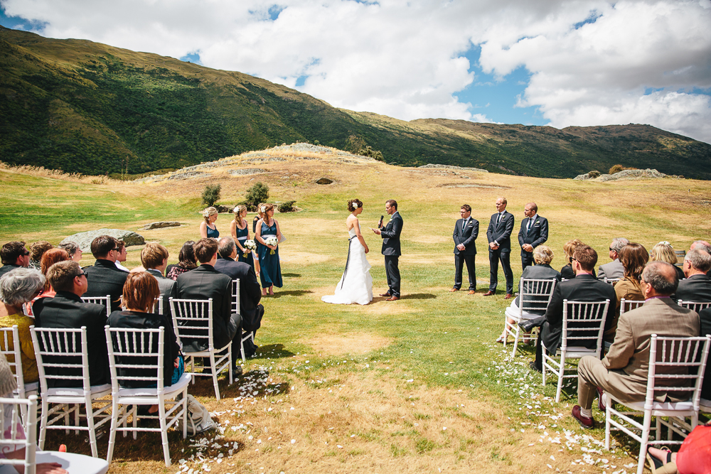 It was only a few days into 2013 when Lani + Bryan celebrated their wedding day with friends and family from around the world in Gibbston Valley. The beautiful outdoor ceremony took place on the lawn before guests enjoyed canapes and cockatils on the rooftop before heading into the rustic woolshed for their dinner reception. After a delicious dinner and some heartwarming speeches (and a special surprise video!) the guests moved back to the rooftop for al fresco dancing under the wing late into the night. Lani did an amazing job ensuring all details were perfectly planned over the year and we helped pull together all her hard work on the day! The groom’s mother arranged all the floral centerpieces and their grandfather hand painted all the tins! So much love, laughter and dancing made for an incredible evening for everyone and we are certain Lani + Bryan have many more years of fun and laughter ahead of them! Amazing photos provided by Jim Pollard Goes Click.
